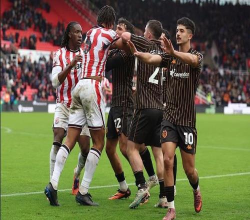据《每日邮报》报道,斯托克城与赫尔城的英冠比赛在最后时刻的制胜球后陷入混乱,比赛以双方球员在场上的斗殴结束,冲突由赫尔城队在绝杀后进行的庆祝动作引发。