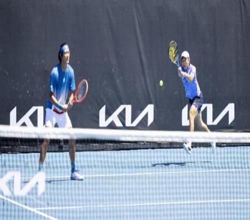 张之臻/商竣程(右)在比赛中。 当地时间1月21日,在墨尔本进行的2026年澳大利亚网球公开赛男双首轮比赛中,中国组合张之臻/商竣程1比2不敌拉姆(美国)/艾伯登(澳大利亚)组合,无缘下一轮。 新华社发(胡泾辰摄)