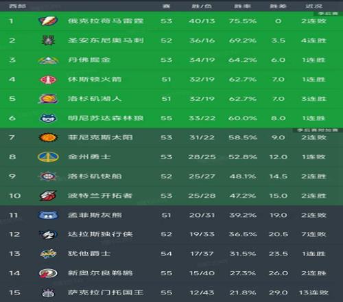 西部最新积分榜